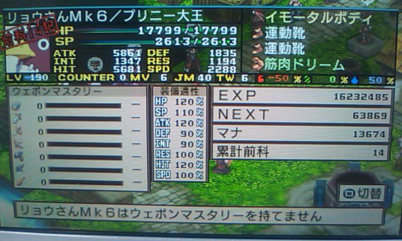 この前「リョウさんMk4」のレベ1を育てた結果↓